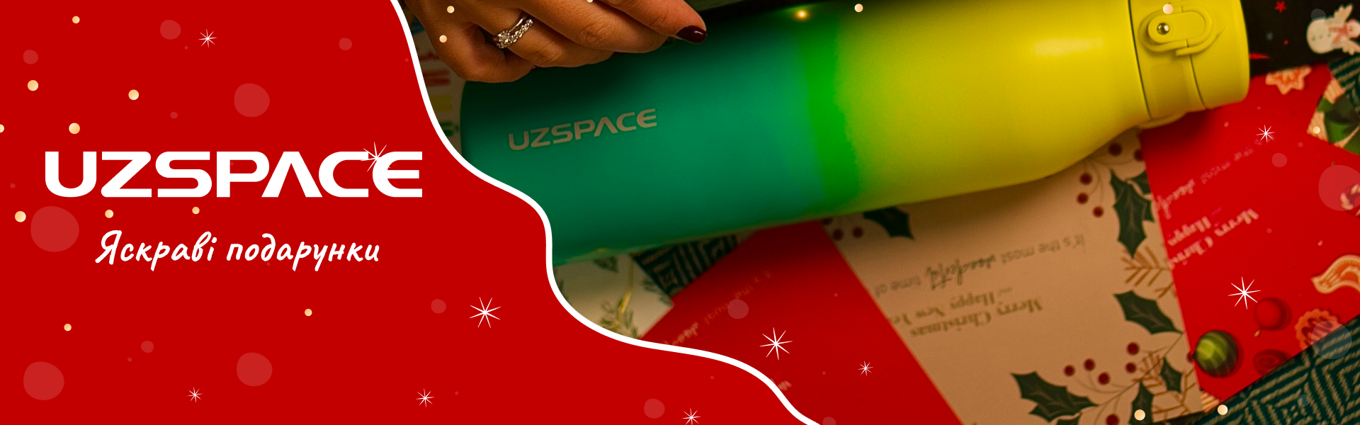 Кожну пляшку пакуємо у фірмову коробку UZSPACE, екопапір/картон і обмотуємо паперовою стрічкою, що переробляється, з використанням натурального крохмального клею.