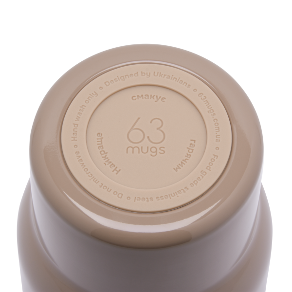 Традиційно для всієї лінійки 63mugs, дно горнятка із силіконовою прослойкою, щоб в офісі під час користування ніхто нікого не дратував стуканням по столу